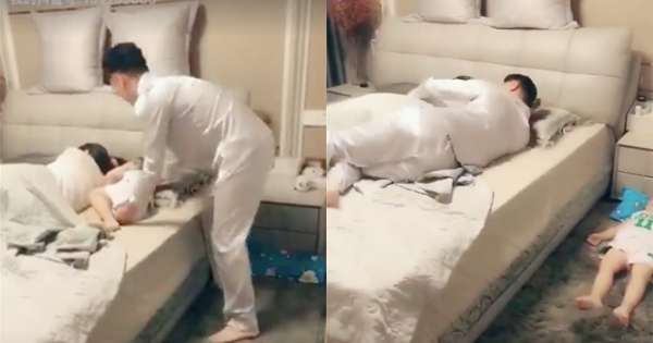 爸爸把兒子抱下床自己抱媽媽睡 兒子崩潰:媽媽是我的!