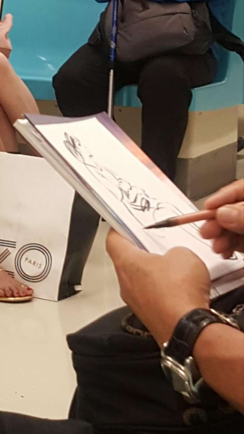 車廂裡目睹阿伯專心畫對面馬尾妹 看過的人都激讚:屌打偷拍