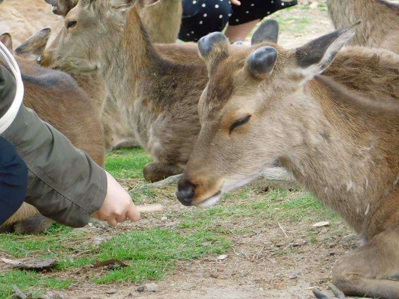 原來這些鹿鹿只是吃飽了,不是對食物失去了興趣啦!不過每天都吃一樣的食物,相信牠們也是會有點膩的,所以想要體驗被鹿群「圍繞」的情景,建議大家還是趁著鹿群還沒吃飽,早點到奈良公園餵食吧!