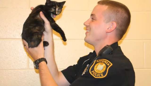 2018年05月26日不久前,美國密西根州利沃尼亞(Livonia)的一名駕駛在96號州際公路行駛。他偶然看到一隻黑色小貓在車流中穿梭,連忙報警求助。員警Cameron Koss正在附近,他擔心小貓受傷,很快就趕到了現場。