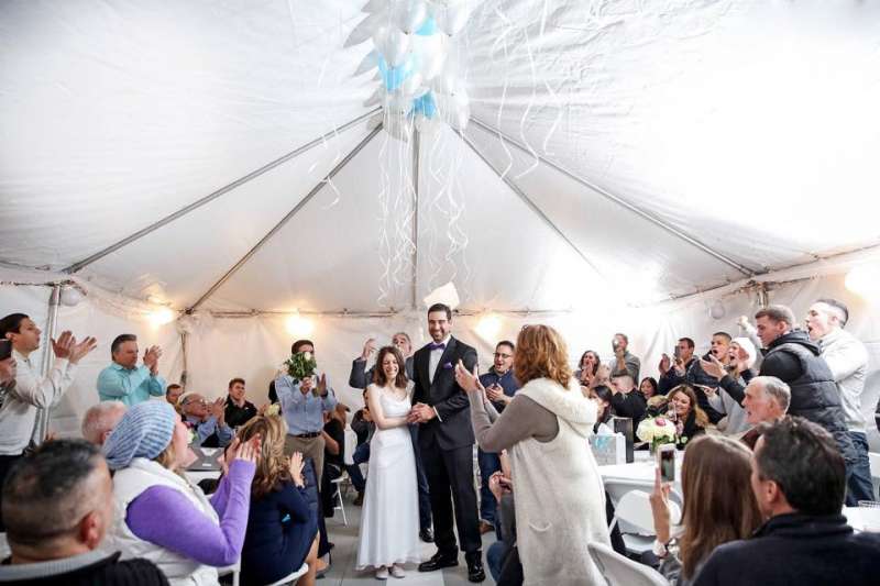 ▼求婚儀式的幾天前是Nicole的32歲生日,男友Danny Rios帶她到迪士尼樂園慶祝,當他們回到紐約的家中,Nicole驚喜的看到後院中搭起了一個大帳篷,而且親友都在。