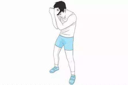 做法:1)身體呈自然站姿,雙腿維維彎曲,雙臂交叉抱住肩膀的位置,將雙肩慢慢往前收,直到有拉伸的感覺後停留5至15秒,最後放鬆回到預備姿勢。