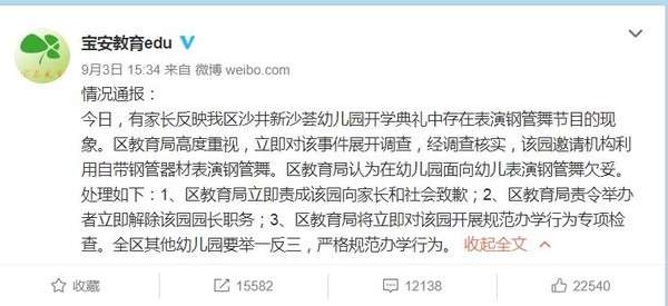 ▼後來園長發出道歉聲明,稱本來是想炒熱活動氣氛,在沒有仔細審查的狀況下有這樣的表演,給孩子與家長帶來糟糕的觀賞,深感歉意。不過現在這名園長已經被開除了。
