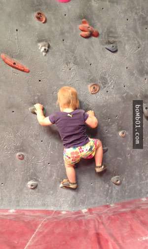 1歲多就會攀岩的「神奇寶寶」 靠自己的力量爬2公尺高攀岩牆