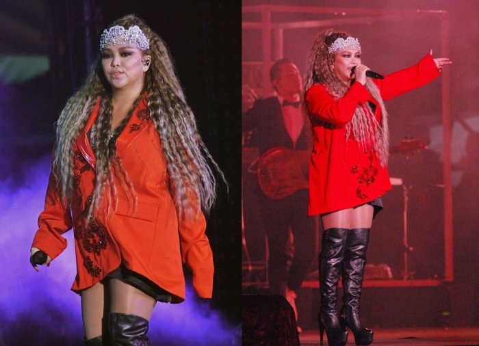 ▼近來阿妹在台北跨年晚會壓軸演出,表演時她穿著紅色大衣,下身則是黑色過膝長靴,打扮非常火辣。雖然阿妹的唱功還是很棒,一連唱了好幾首快歌,將現場氣氛炒得火熱,但她的身材也引起了討論。