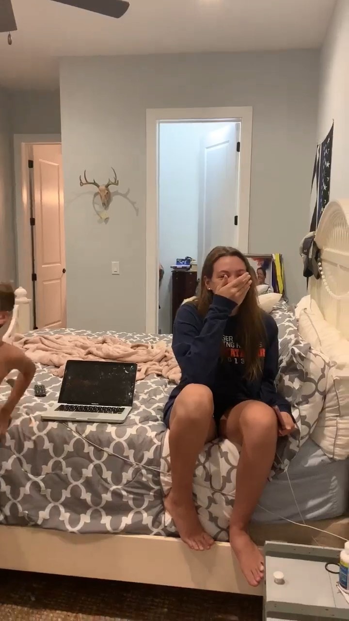 ▼原來這位爸爸 Jason Hilley 將一條牛仔褲剪短,製作成跟女兒一樣的超短熱褲,再穿著走到女兒的房間。
