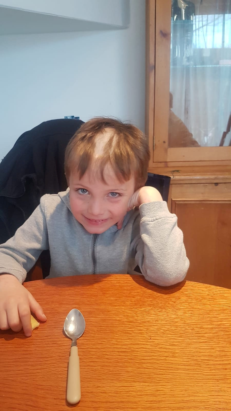 ▼5歲男孩剃掉頭頂頭髮變成「小老頭」: