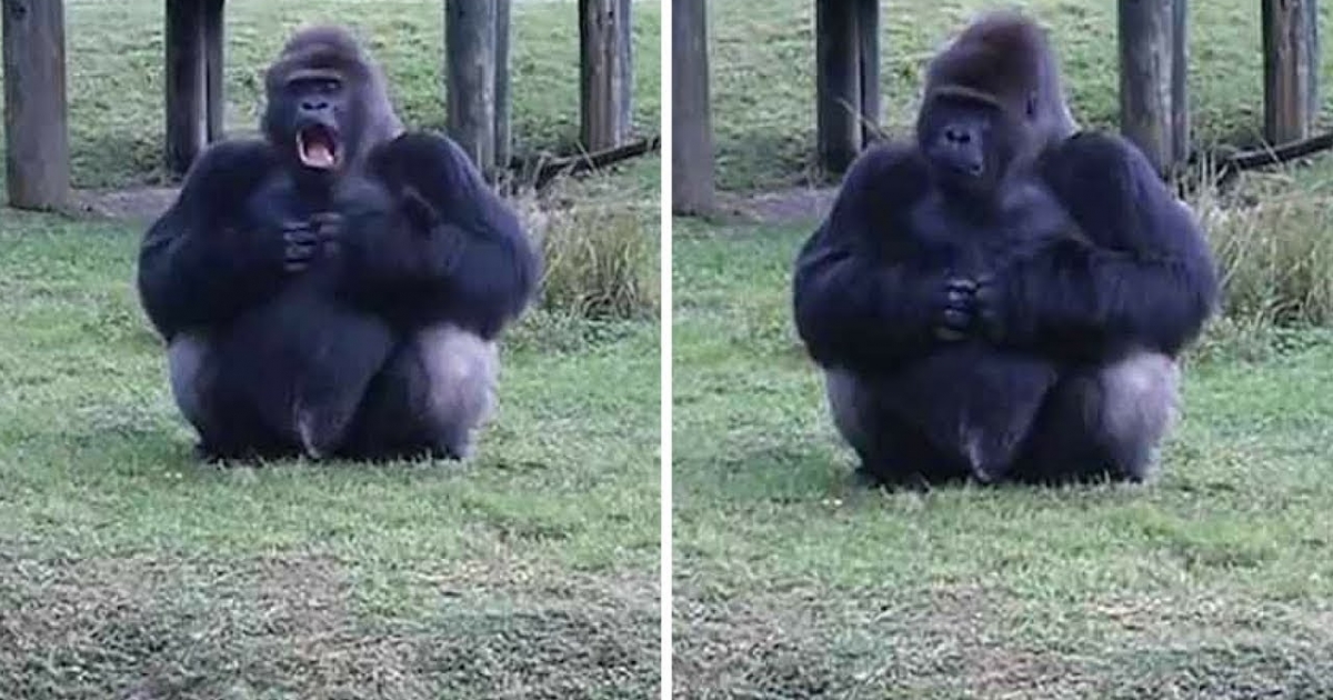 大猩猩用手語裝可憐「請勿餵食」 遊客心疼丟食物牠馬上塞嘴巴裡