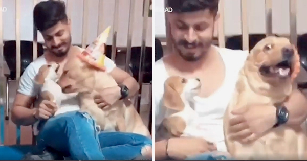 大狗生日太興奮猛蹭小狗 被吠一聲後嚇到定格 「對、對不起嘛」
