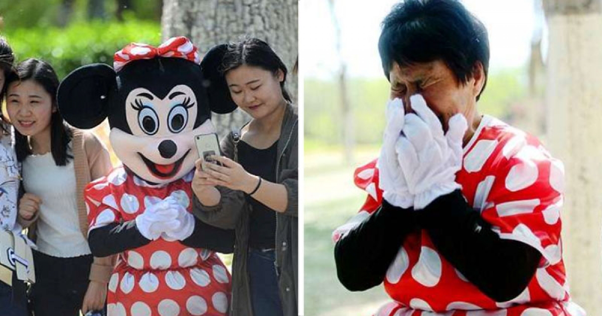 公園出現「米妮」收費跟大家合照 頭套摘掉竟是讓人心碎的老阿嬤