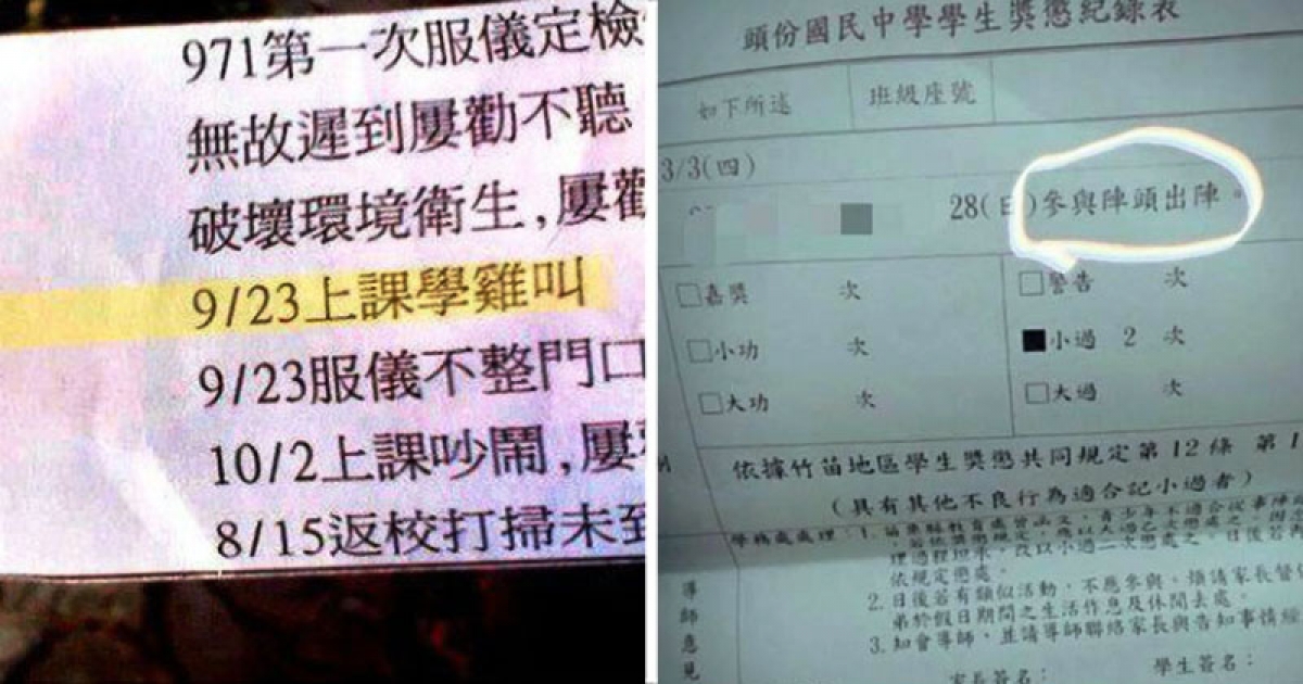 網友分享各種「廢到笑」的記過理由 上課吃高麗菜、取消老師禿頭⋯