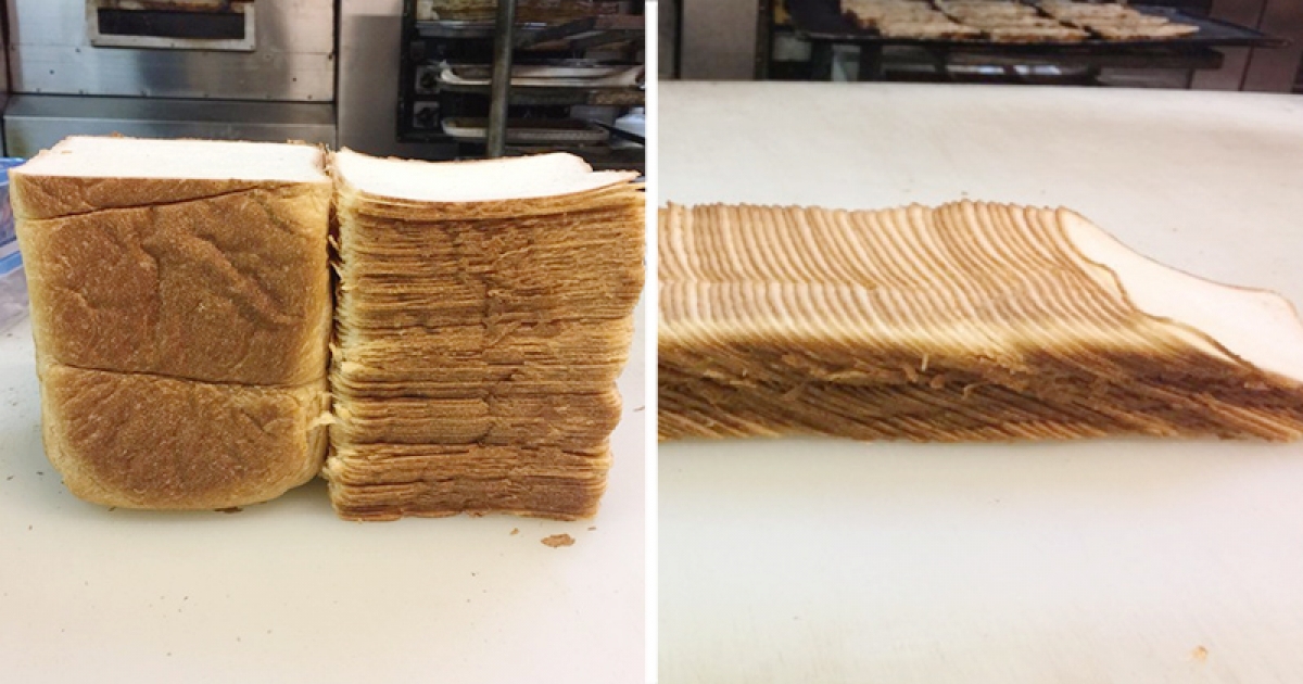 每片1.5mm「薄到透明」 神人把半條吐司「神切」77片