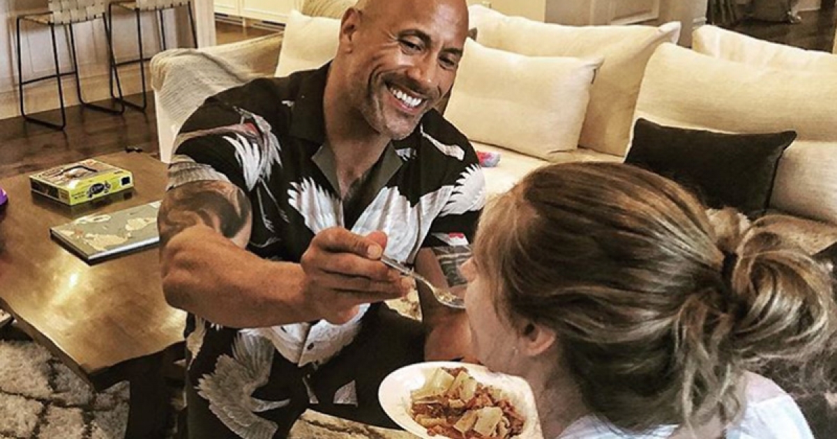 老婆忙著哺乳晚飯都還沒吃 巨石強森直接下跪餵食「暖翻大家的心」