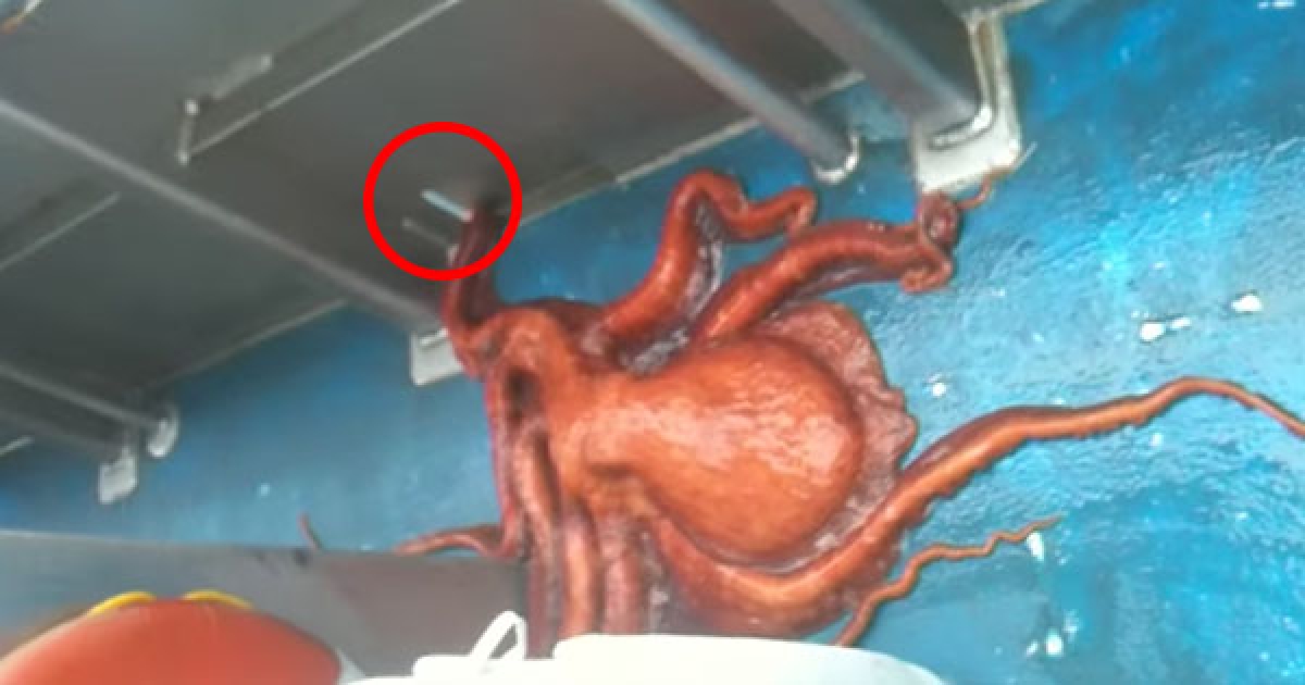 以為章魚被抓上船後已經無法逃走 怎知牠卻從一個「小到不行的洞」成功逃脫