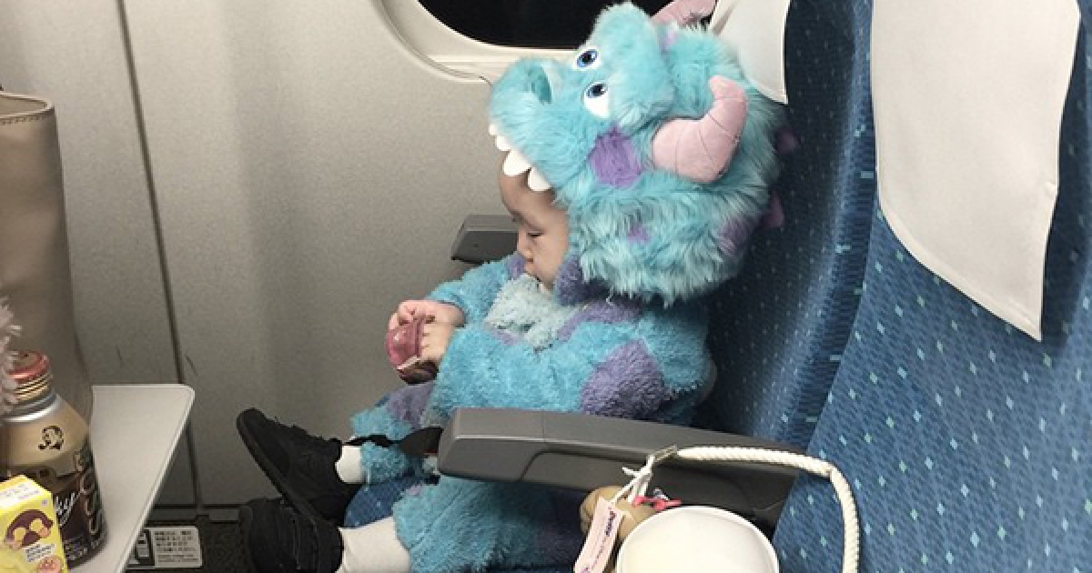 日本小底迪Cosplay小毛怪 迪士尼遇到本尊「不小心跌倒」互動爆可愛