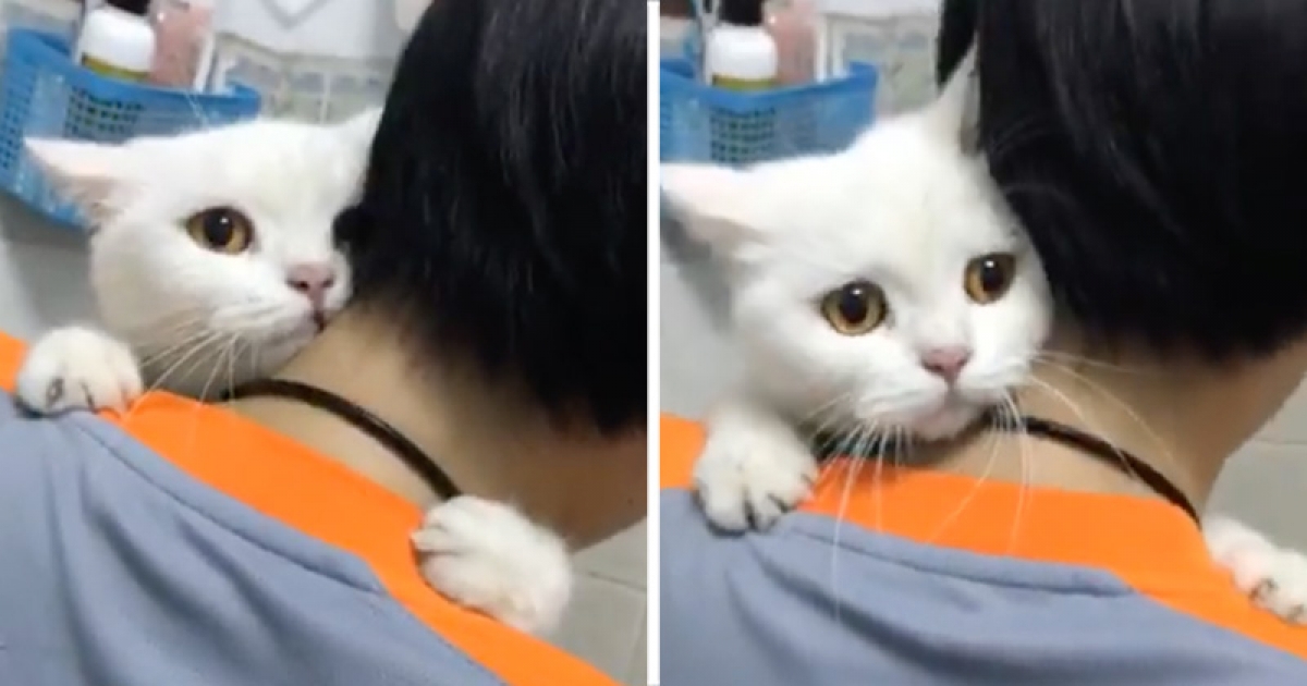 「人家不喜歡洗澡~」 喵喵瞳孔放大抱緊主人:朕不准你放開我