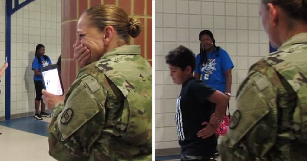 一年不見的軍人媽媽偷偷到學校 老師一叫他轉頭⋯眼淚hold不住了