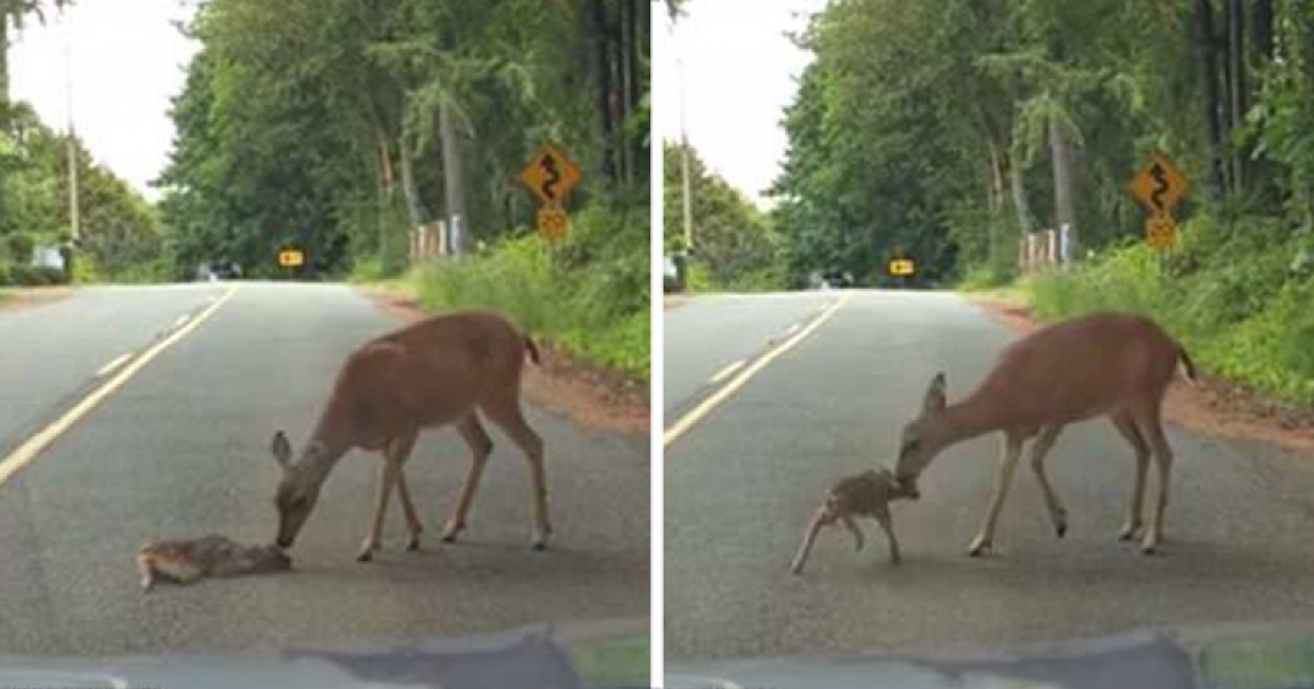 鹿寶寶受驚趴在馬路中 他目睹「鹿媽媽溫柔之舉」感動泛淚