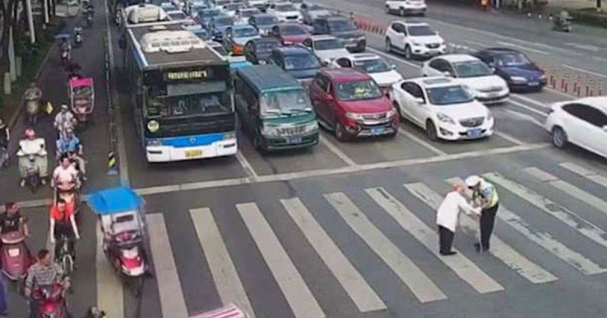 老爺爺過馬路太慢「綠燈都亮了」 下一秒司機們的反應暖翻全球