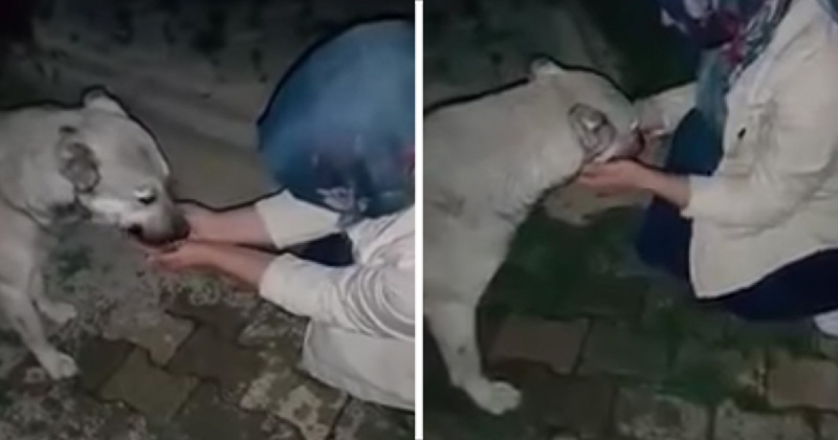 女孩用手捧水餵口渴浪浪 牠喝飽後竟然「伸手手」感謝