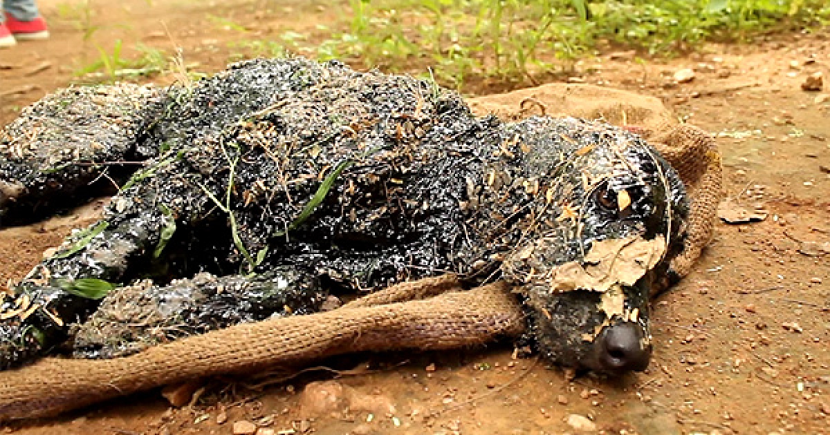 「瀝青狗狗」一動不動眼露絕望 花2天清洗竟然變超黏人的小可愛