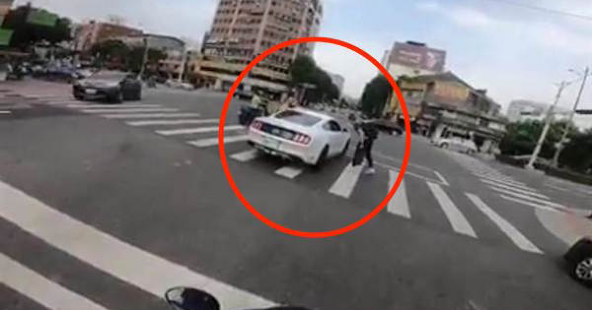 「白色野馬」紅燈橫停斑馬線 黑衣正義哥上前開嗆:駕照去重考啦