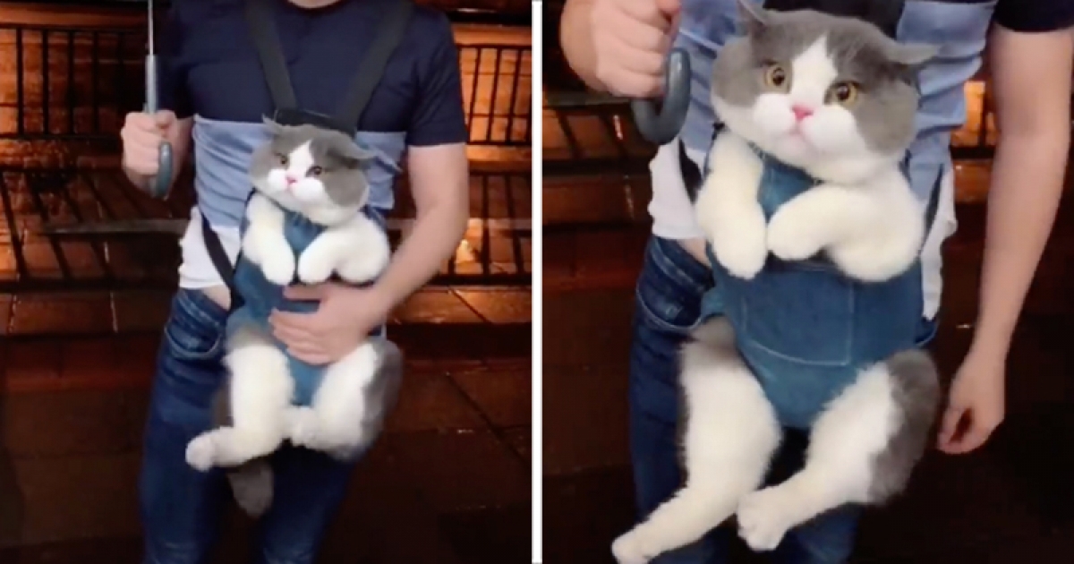 胖貓皇用嬰兒背帶模樣超激萌 微服出巡讓路人都想抱緊處理啊