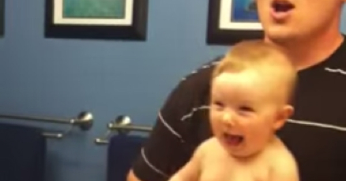 爸爸對鏡子展現肌肉 小寶寶燦笑模仿:我也有~