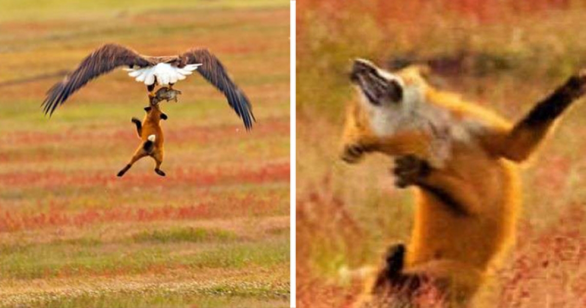 「我的晚餐飛了~」 狐狸怨恨看著獵到的兔子被老鷹搶走