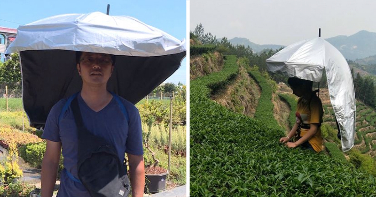 農民發明最狂「防曬揹傘」對抗太陽 溫度速降3到10度超屌