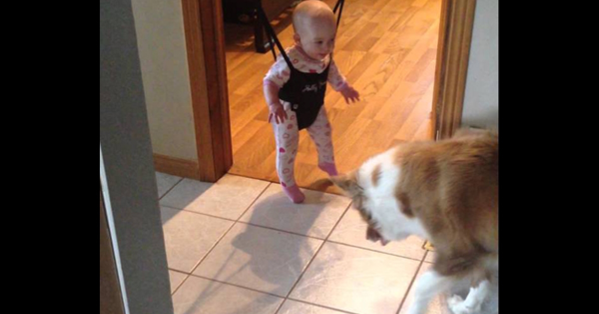 「寶寶快看我~」 狗狗努力當老師 跳跳跳想教小寶寶走路