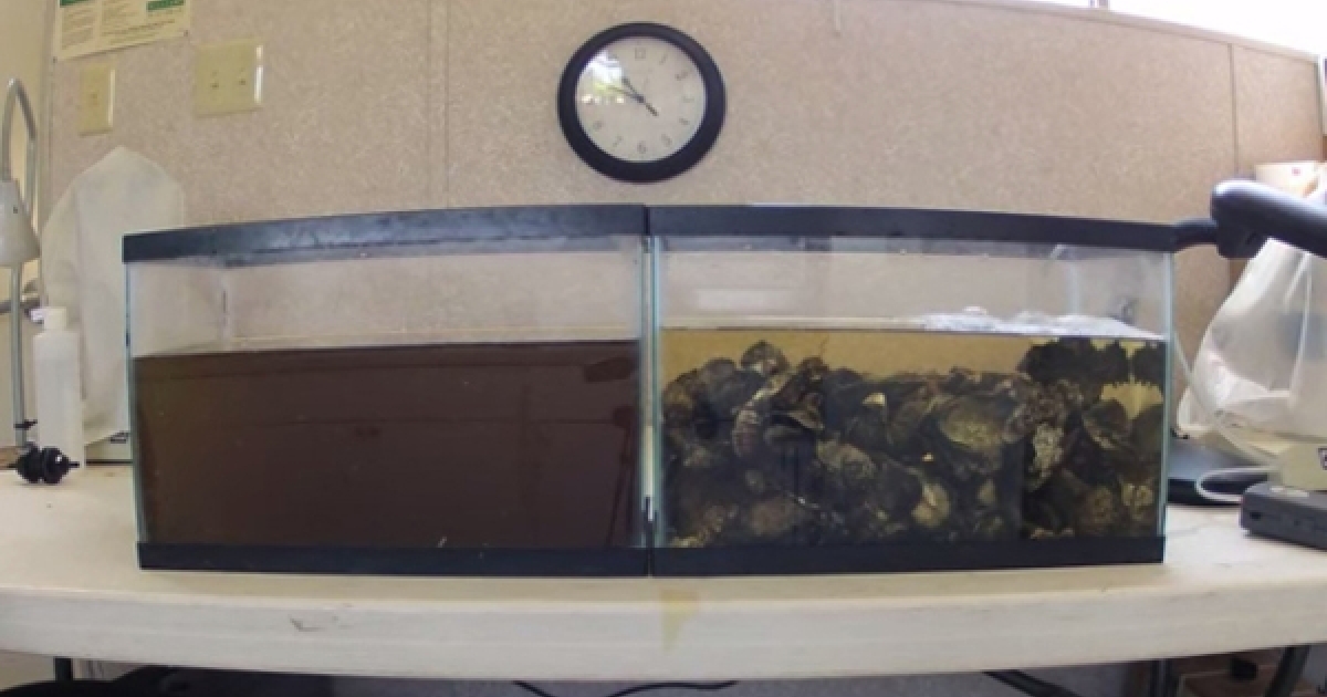 牡蠣是天然淨水器! 丟進一盆髒水裡 牠馬上過濾給你看