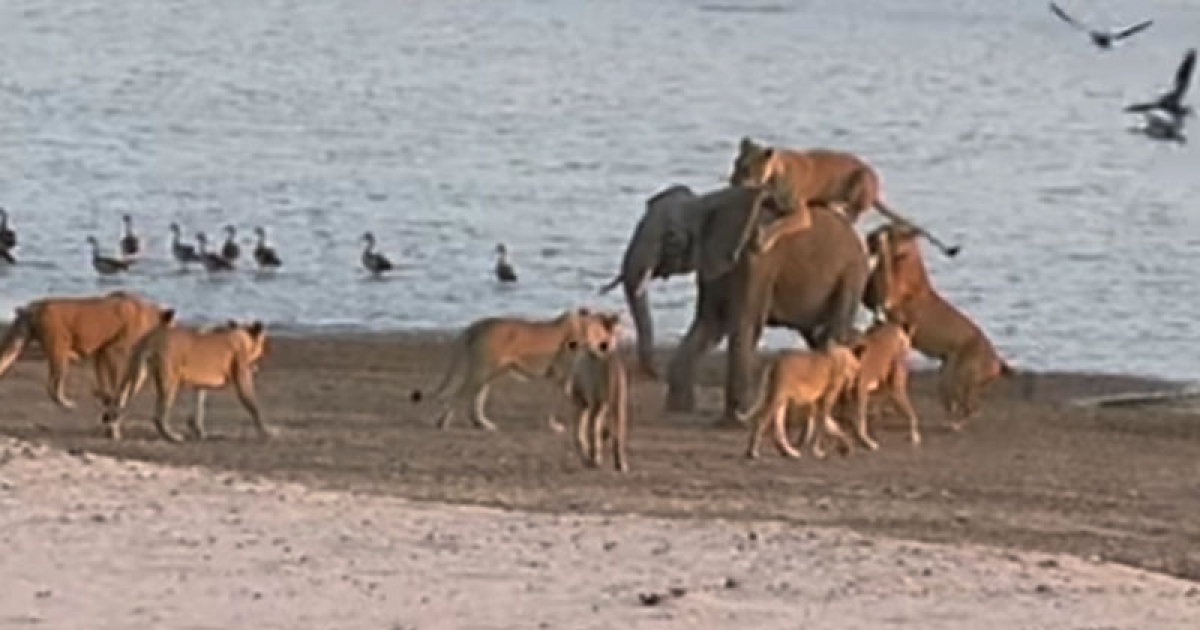 1歲小象眼看就要被14隻獅子吃掉 下一秒「牠突然暴衝」逆轉結局