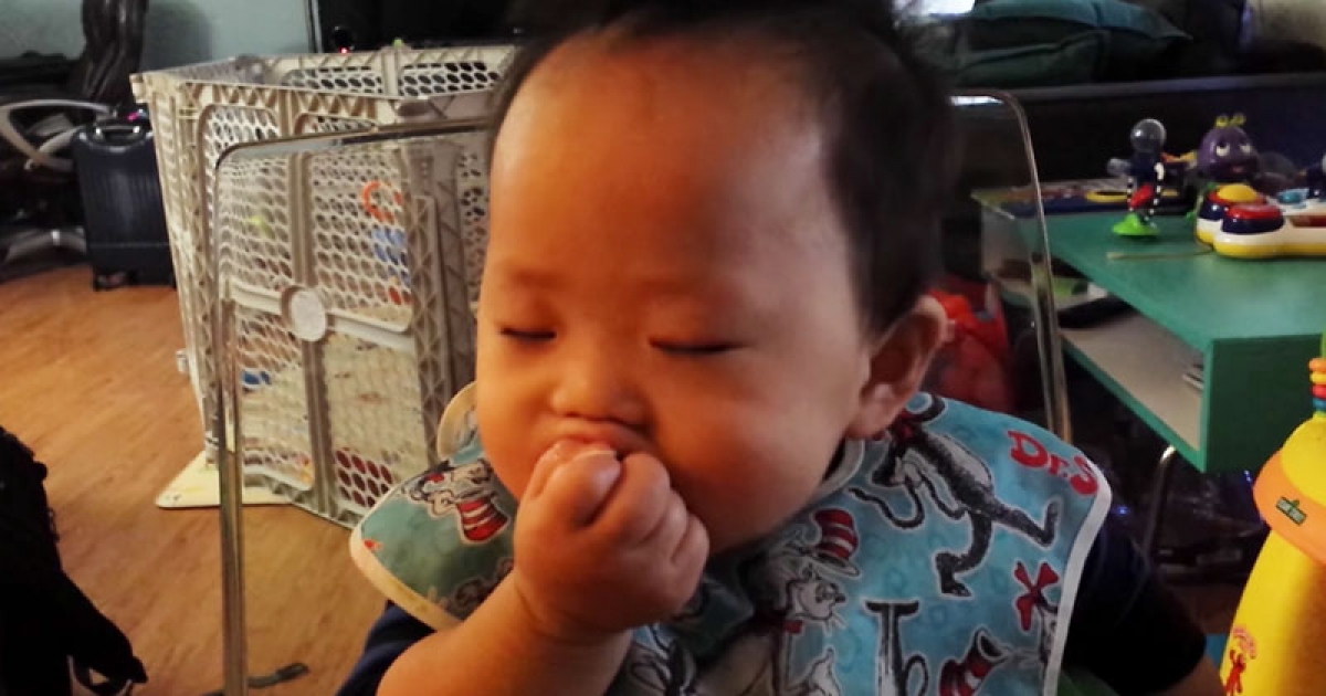 「吃東西 VS 睡覺」小寶寶陷入兩難 下一秒歪頭閉眼笑翻全網