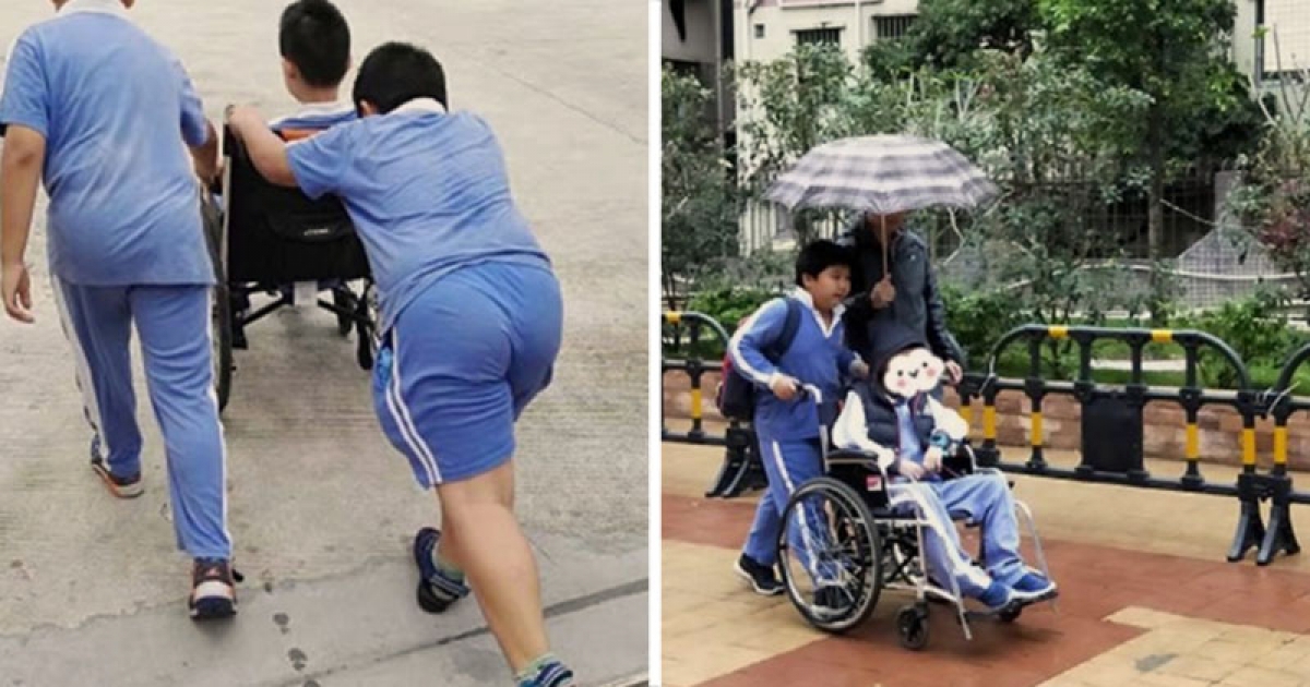 老師一個拜託「他默默照顧坐輪椅同學4年」 剛得知的媽媽一句話讓大家哭了