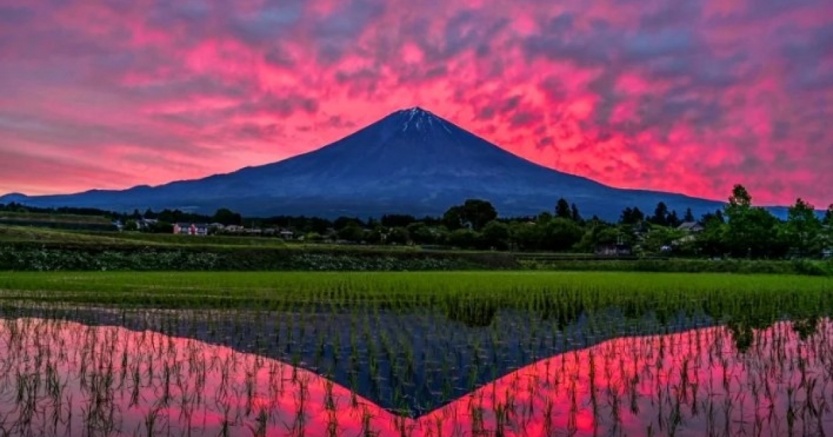 每天拍富士山「拍到爆紅作品」 火燒般的「富士山與稻田」倒影