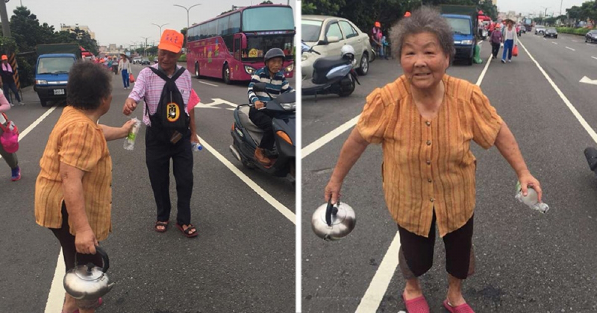 可愛阿嬤在媽祖回鑾現場「免費奉茶」 網讚:比星巴克好喝
