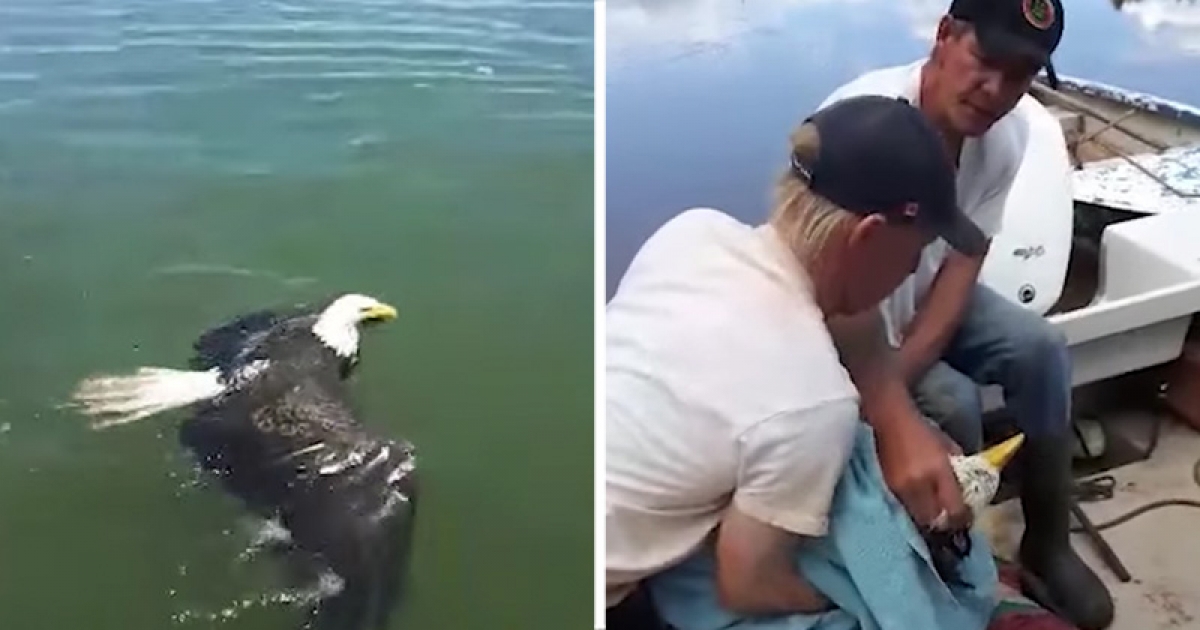 拼命游泳的白頭鷹受傷了 碰巧經過的人偷偷伸出手秒抓住牠