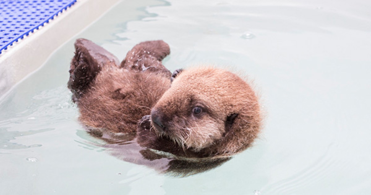 沒有媽媽守護的小水獺學習游泳 牠慢慢適應的模樣超激萌