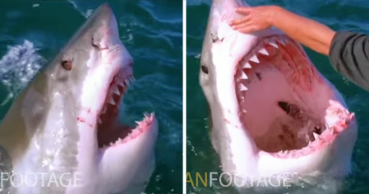 狂男在海上遇到大白鯊的第一反應 竟然是「伸手摸摸頭」