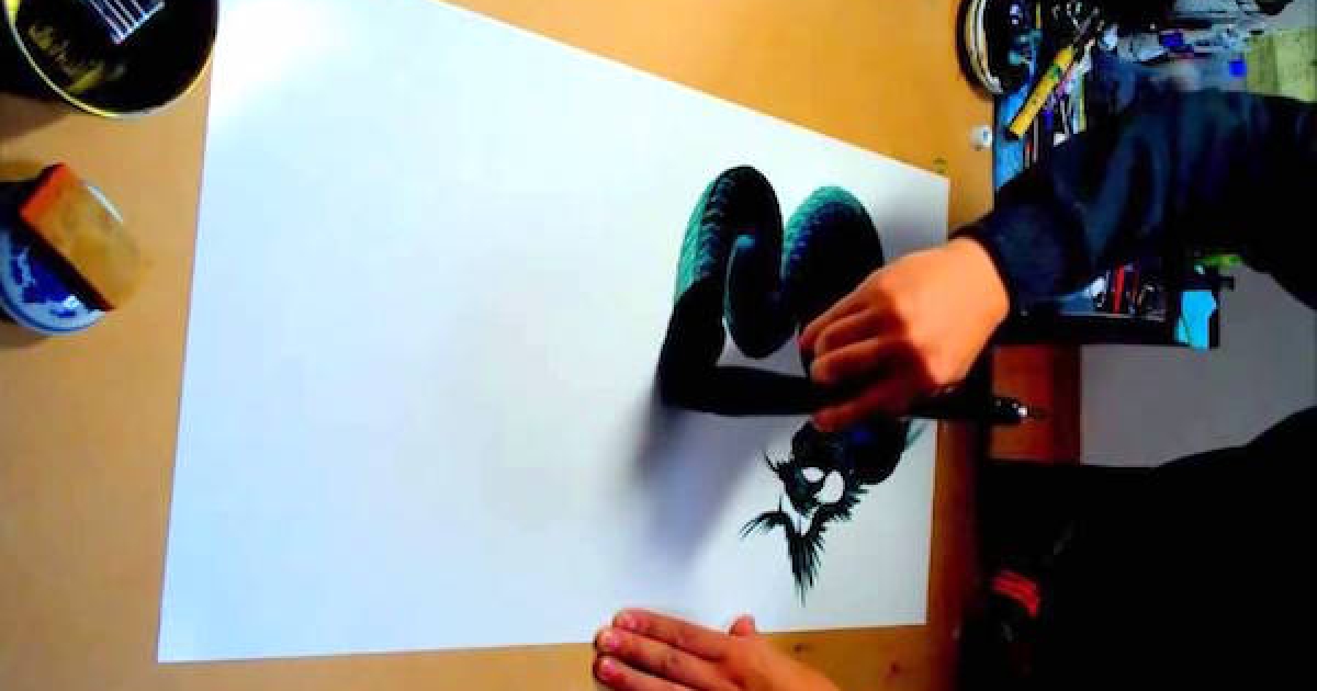 快出來看上帝! 藝術家毛筆才沾完墨 一筆就造就飛翔龍身