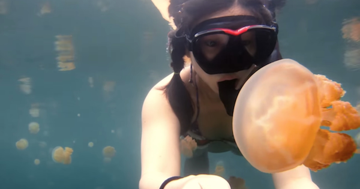 湖裡全是水母! 女生放膽跳進去潛水 畫面讓網友驚:還不快逃出來