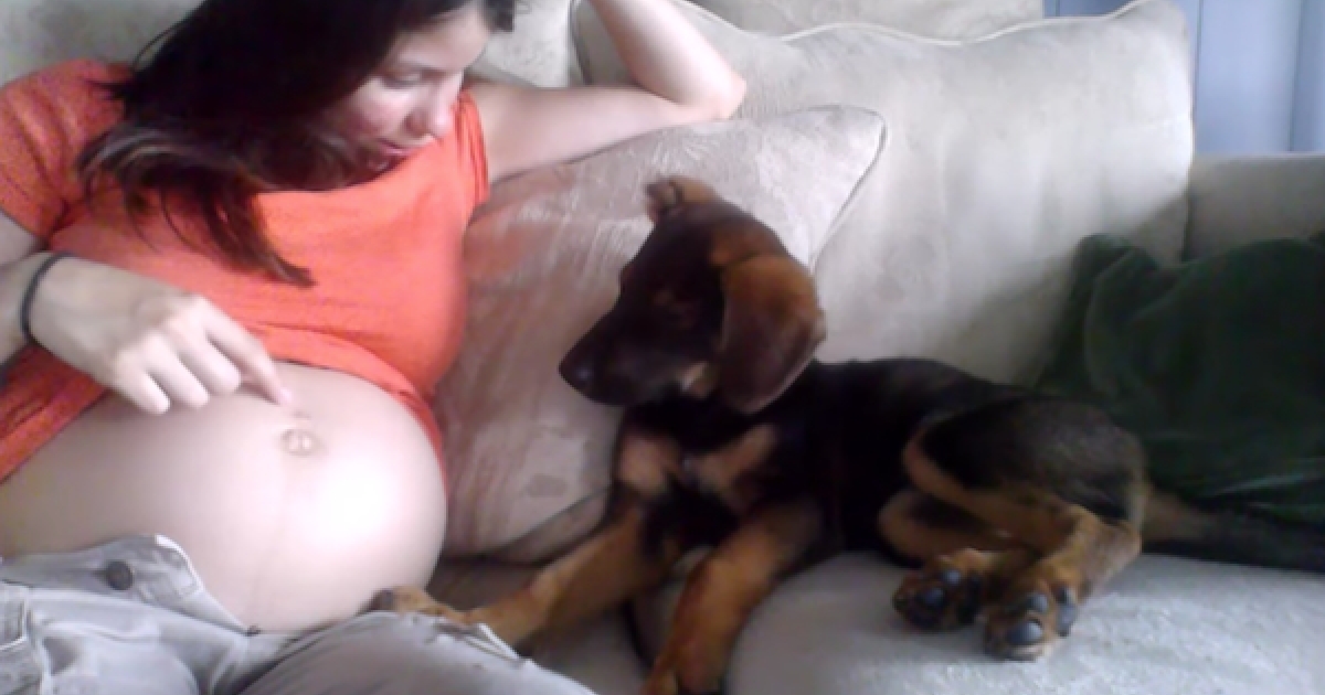 媽媽指肚子告訴狗狗「你要當小姐姐了」 狗狗「聽懂後」承諾會守護她