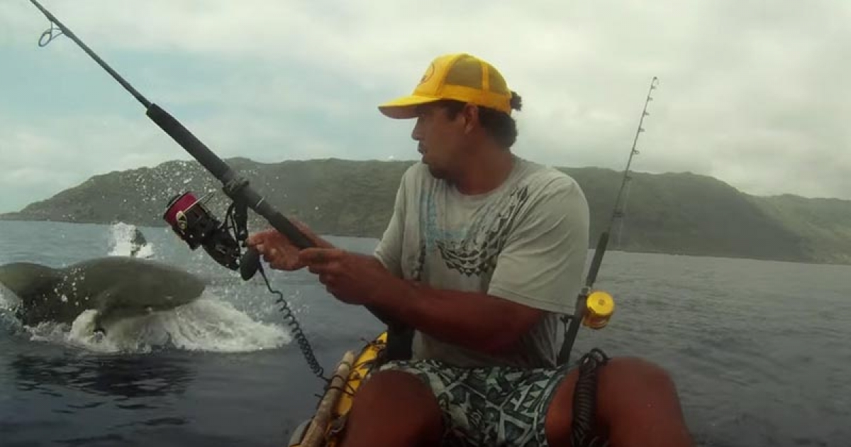 悠閒地釣魚居然遇到鯊魚獵食 躍出的瞬間把他嚇到臉歪掉