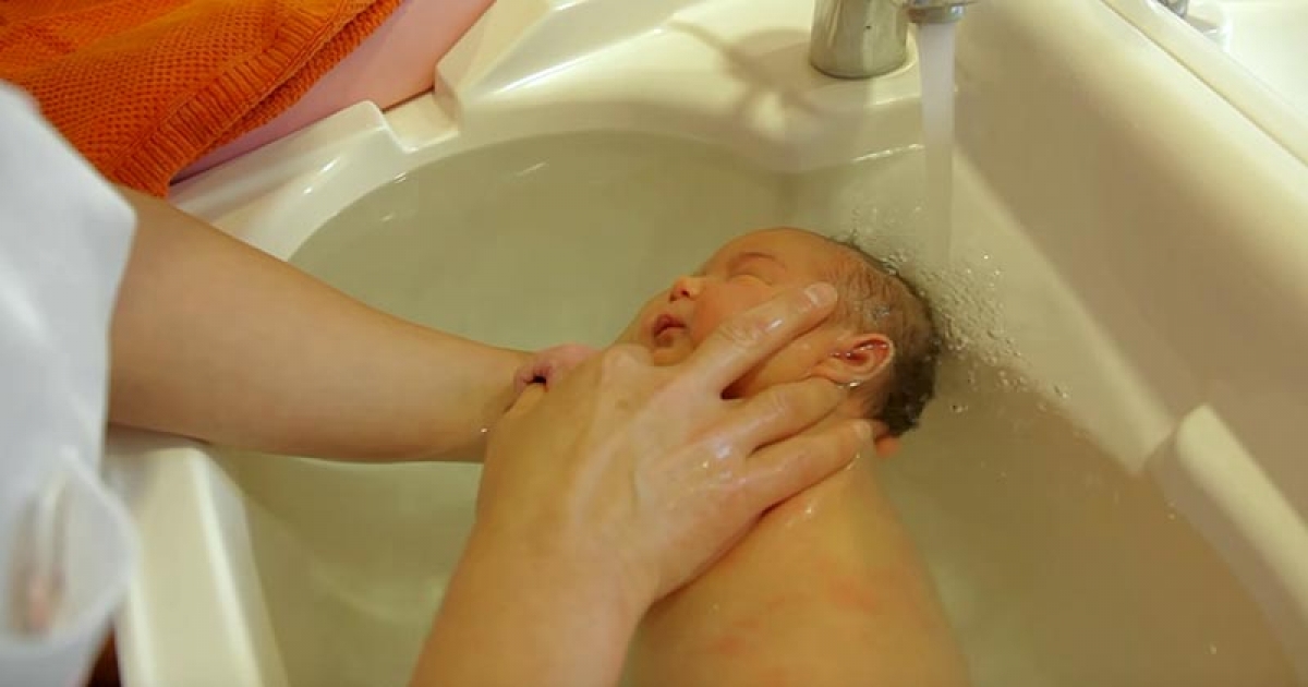 不要誤會她在虐待寶寶 她其實是在示範「獨門幫寶寶洗澡秘技」