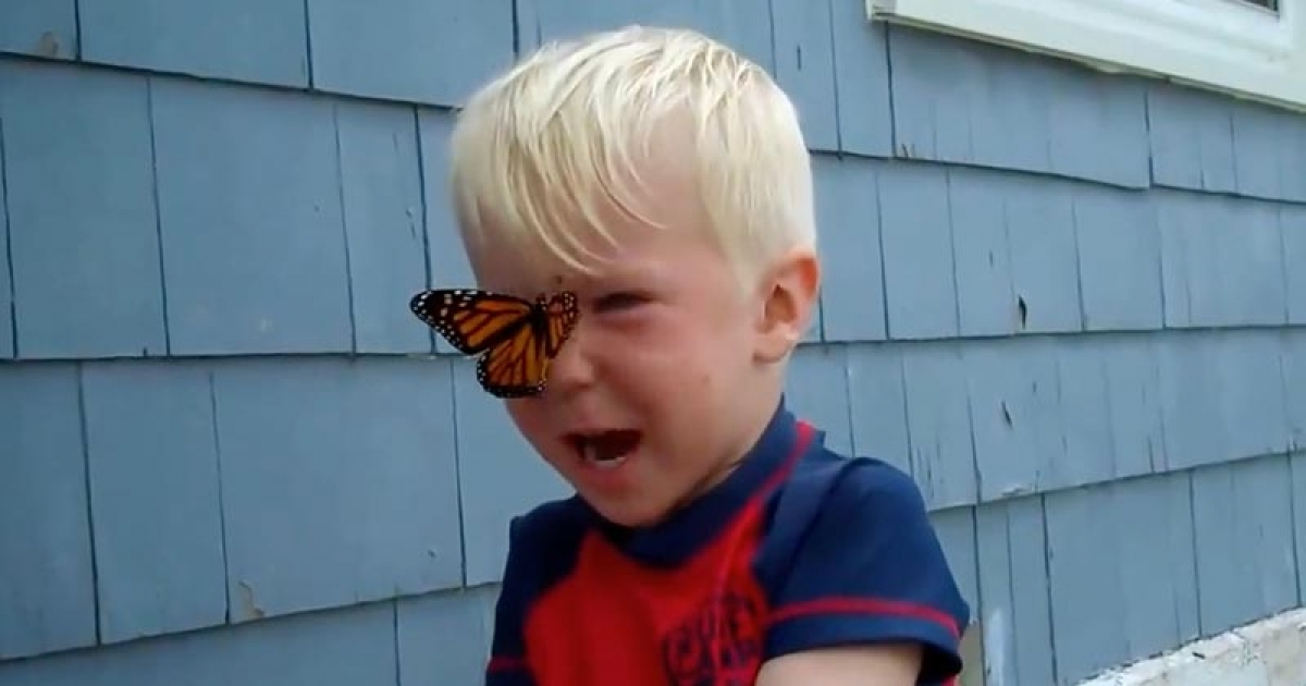 小男孩看到蝴蝶飛到鼻子上呆愣住 下一秒萌翻天反應讓大家嘴角上揚