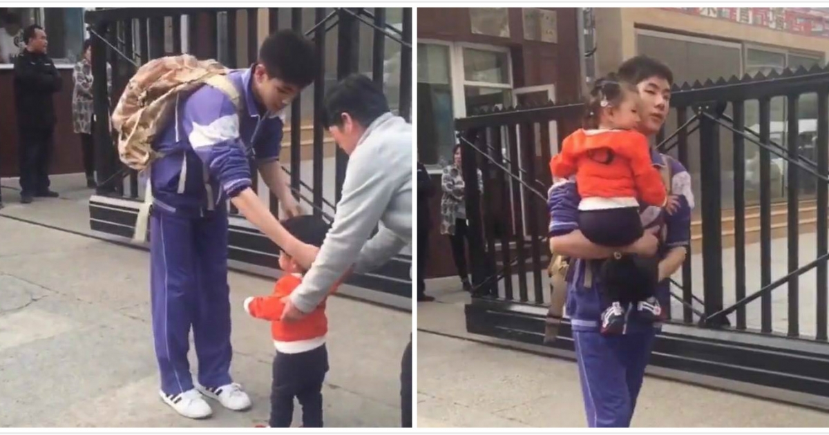 大哥哥走出校門看到妹妹 一把抱起來讓網友直呼:是暖男無誤