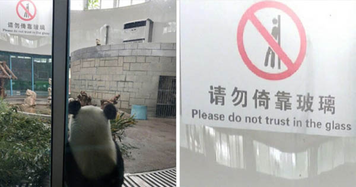 熊貓無視標語直接靠在玻璃上放空 全網笑翻:國寶有心事?
