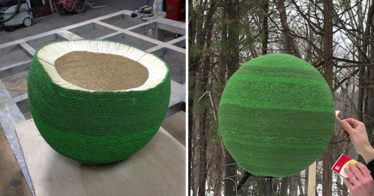 42000根火柴黏成巨球! 他一點燃「綠色變黑色」 以後再也不想幹這種事了