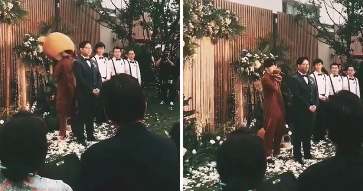 婚禮上的玩偶突然「摘掉頭套」 新娘一眼認出當紅男歌手當場哭花臉